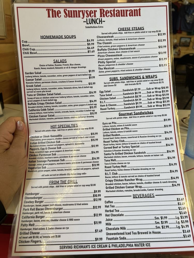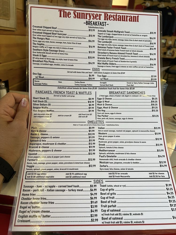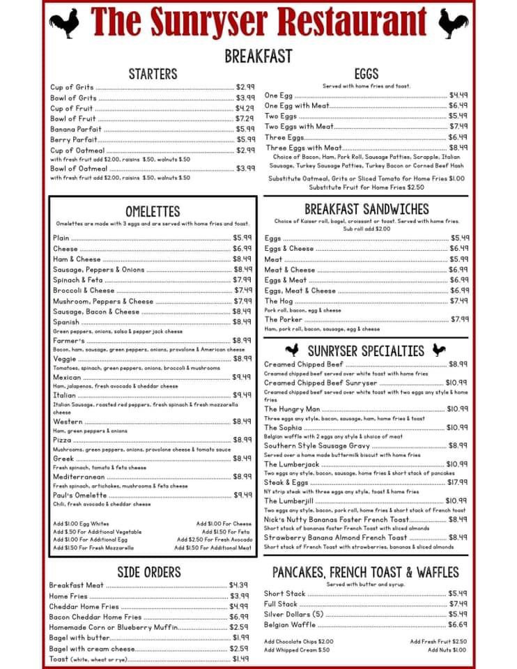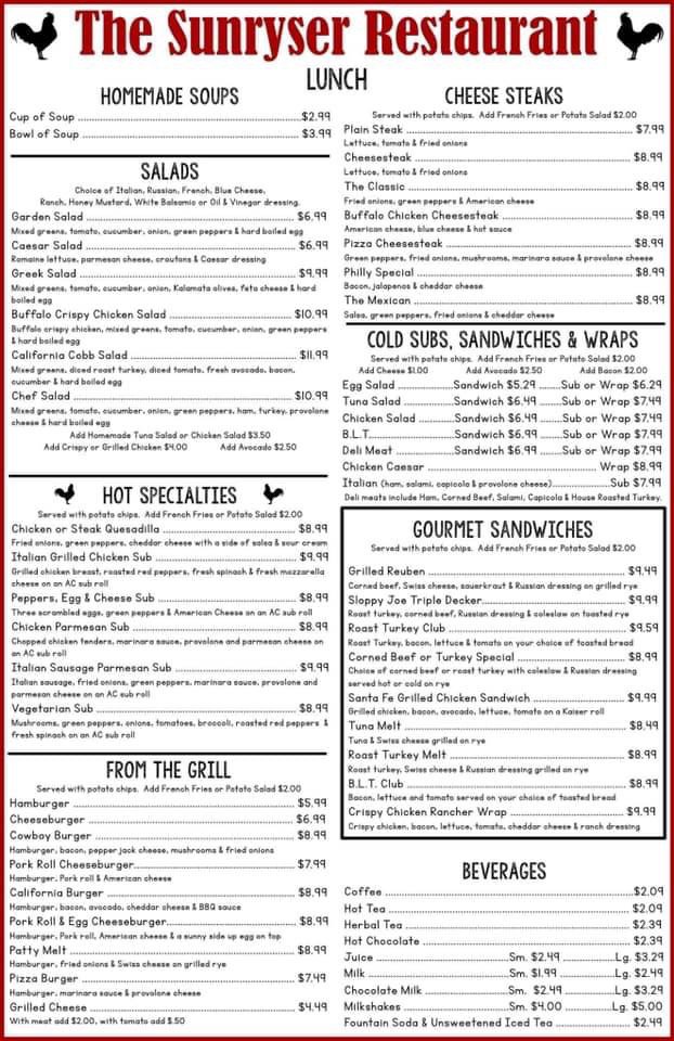 The Sunryser Restaurant & Deli Menu